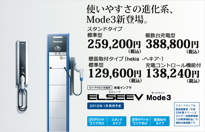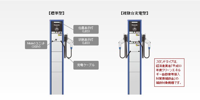 充電ケーブルを搭載したスタンドタイプです。2台の電気自動車へ対応できる複数台充電型もラインアップしています。