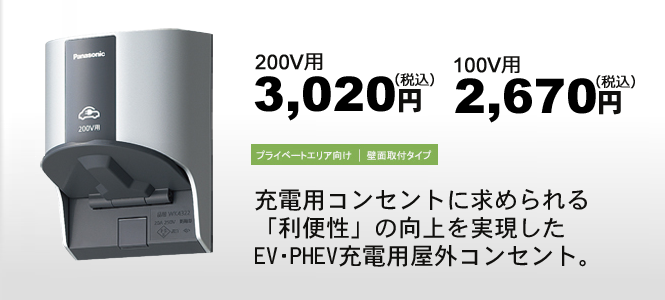 建物の屋側などへの設置には壁面取付タイプの充電用コンセント