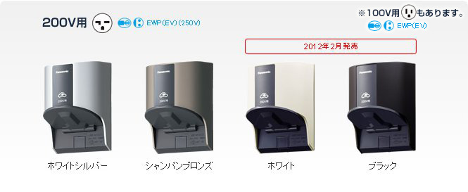 パナソニックのEV充電用コンセントは、日本配線器具工業会規格JWDS-0033に準拠した、下記電源プラグに対応しています。